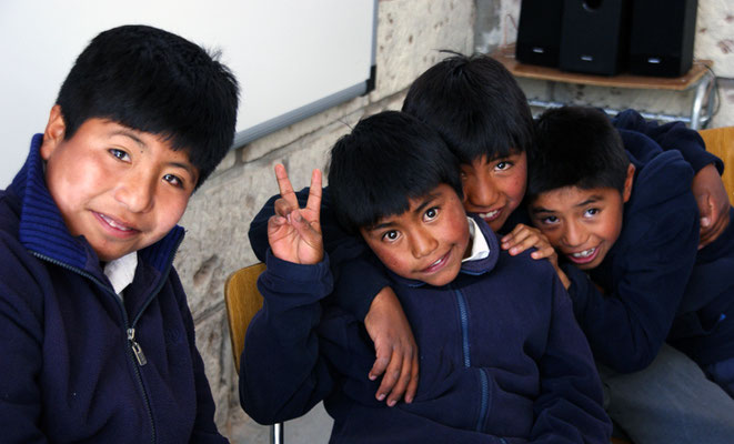 Wie von einem Balkon überblickt man von hier oben den Salar de Atacama. Ein besonderes Erlebnis wird für uns der überraschende Besuch in der Schule des Ortes. Schüler unterschiedlicher