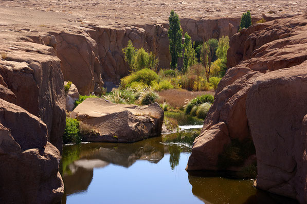San Pedro de Atacama auf 2443 m Höhe ist eine Flussoase am gleichnamigen Rio San Pedro. Schon vor 11 000 Jahren lebten hier Menschen (San Pedro - Kultur) vom Anbau von Mais, Reis, Bohnen, Feigen,